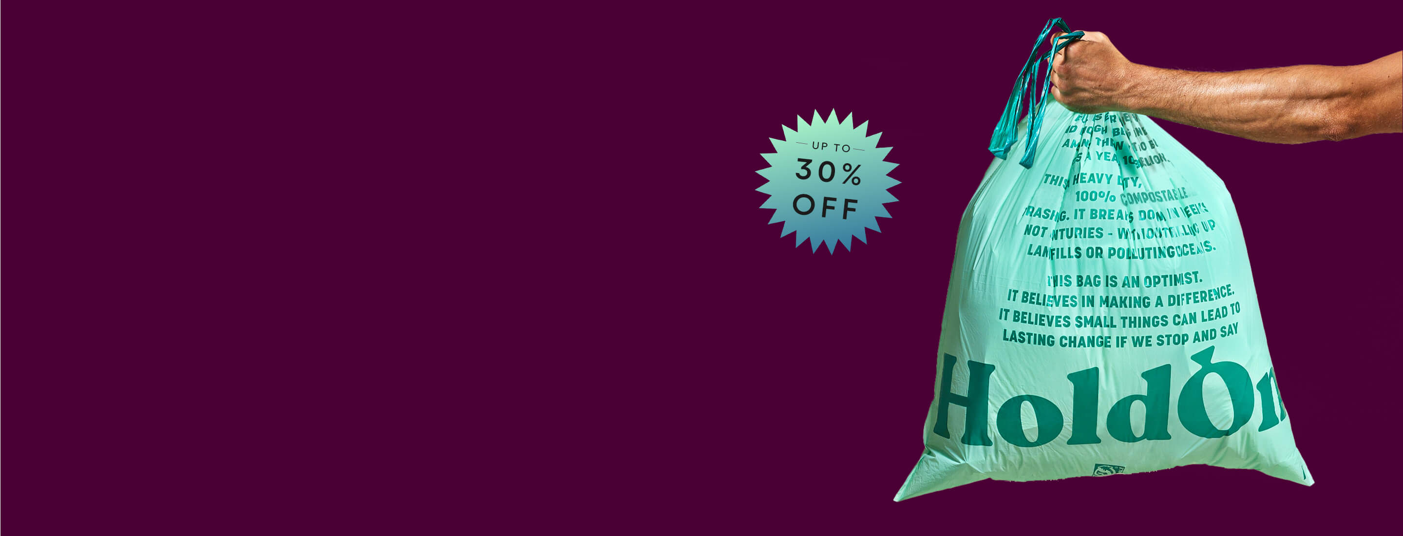 Our heavy duty bags are made with a unique mix of compostable materials and plant-based renewables like cornstarch that break down cleanly when composted, so you don't have to compromise convenience to care for the earth.