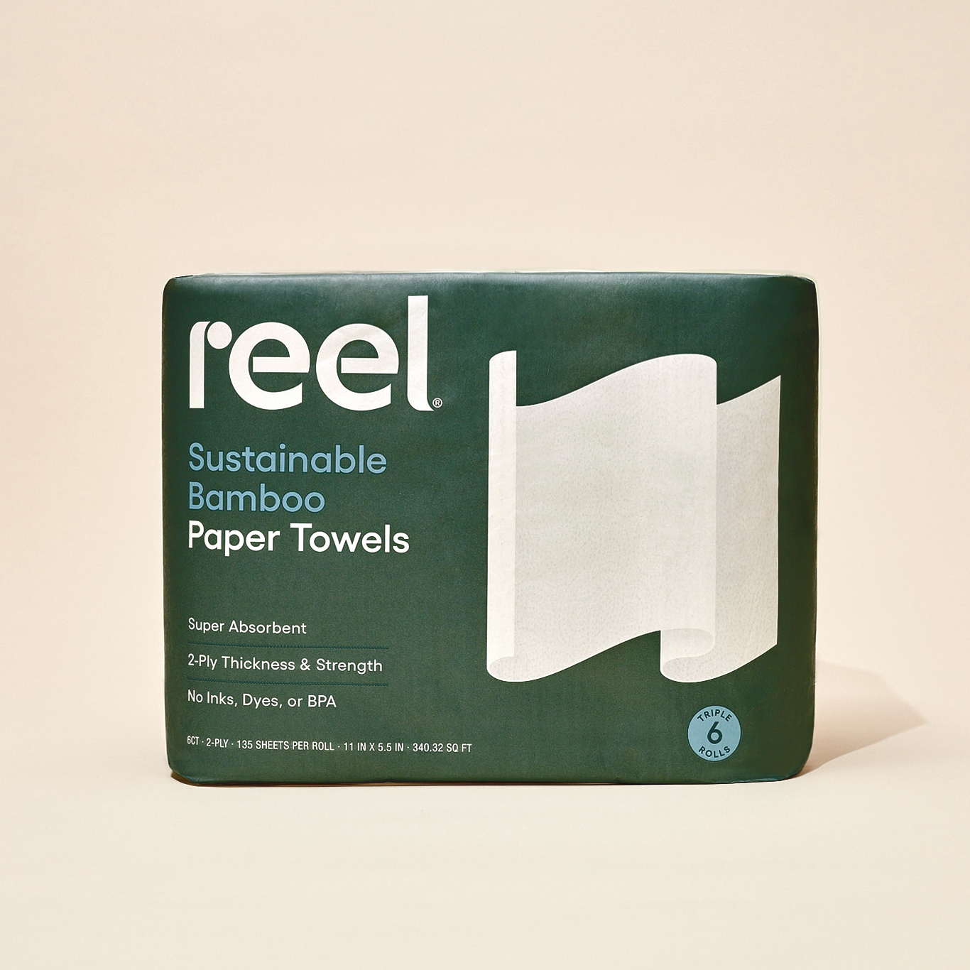 Thousands of trees are cut down daily to make paper towels. Reel is made from tree-free, 100% bamboo paper.